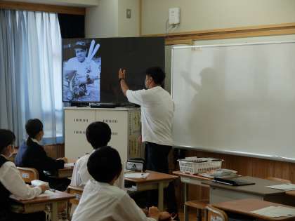 9年生の社会では第一次世界大戦後のアメリカについて学習をしていました。2刀流で活躍した野球選手,飛行機で世界一周をなしとげたことなど興味深い話題に子どもたちは楽しそうに活動をしていました。