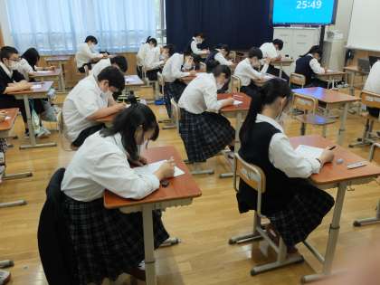 今日の社会の学習では,単元テストに取り組んでいました。もうすぐ総括考査もあります。単元テストの結果をしっかりとふりかえり総括考査に向かってほしいと思います。