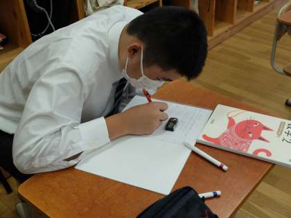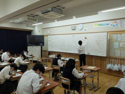 8年生の数学の学習では「連立方程式」の学習を行っていました。代入法をつかって解く連立方程式。「難しいですが,解けた時はスッキリする!」と言っていました。意欲的です。