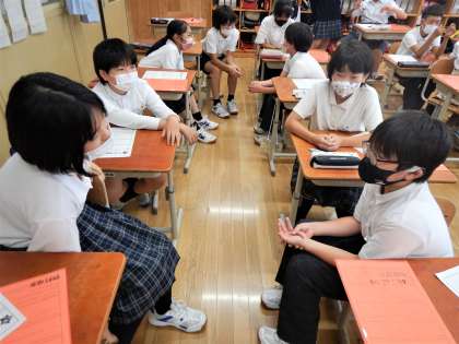 「勝手なことをする人がいるとクラスがまとまらない」「注意をしてあげないと仲間外れがでてしまう」「まずは自分の行動を見直すことが大切」など積極的に意見を出し合う,有意義な学習ができました。ぜひ,来週の取組にいかしましょう!