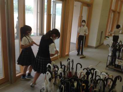 ろうかでの掃除の様子を見てみました。一生懸命がんばっています!