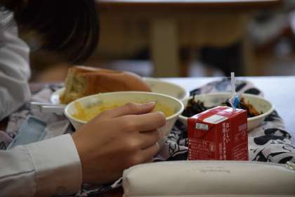 昼食後,一生懸命クラスの食器を片付ける給食係に一言「おつかれー」と言いたい気持ちをぐっとこらえ,「ありがとう!!」と伝えると,ちょうど食器を返しにきた生徒がとても嬉しそうな表情で,口の中が「パンパンや」と教えてくれました。