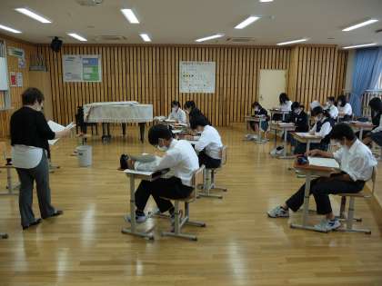 合唱コンクールで歌う曲が決定しました。今日の音楽の学習では,決まった曲の鑑賞を行っていました。修学旅行,秀蓮フェスティバル体育の部の次は,秀蓮フェスティバル音楽の部(合唱コンクール)みんなで次の目標に向かってがんばりましょう!