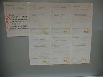 9年生の掲示版には,数学で取り組んだ課題レポートが掲示されていました。もちろん全員が取り組んでしますが,その中での優秀者です。数学では単元ごとにレポートがあり,自分の学びをまとめています。優秀レポートを見て自分のがんばりにいかしてほしいです。