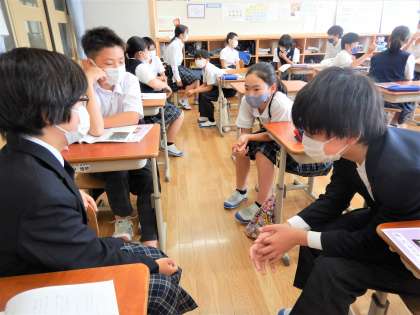 今週の道徳の学習は,先生が入れ替わって行いました。写真の学級では『杉山の声を聞く画家—豊田三郎—』という教材をもとに学習をしました。