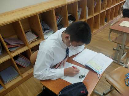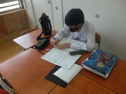 黙々と集中して学習しています。1日目の学習会からすっかり勉強モード。切り替える力,大切です。