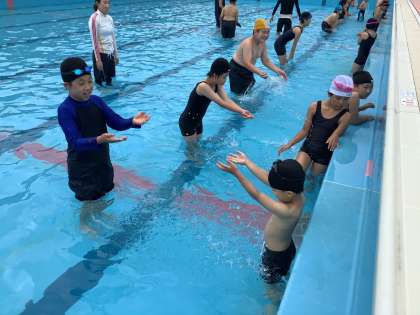 学校のプールがはじめてだった1年生も上級生に優しく教えてもらい,楽しく学習することができました。