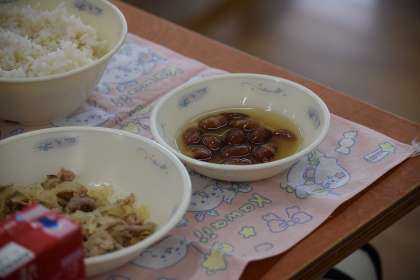 前菜という位置付けで,豆を一粒口に入れ,大おかずにお箸を向ける生徒や,食後のスウィーツというポジションを確立させている生徒もいました。