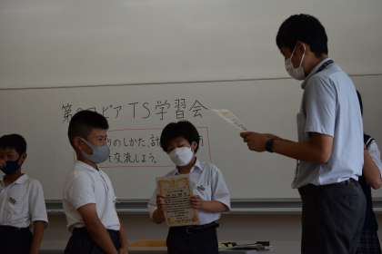 続いては,5年生の表彰です。5年生の新☆ムカイジマンは2名です。