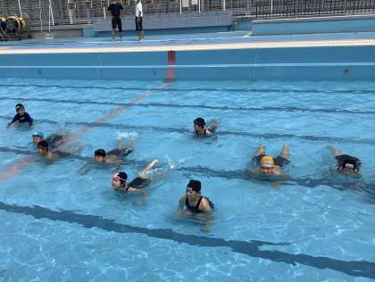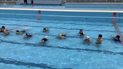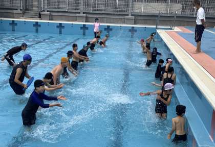 プール散歩,水のかけあいっこ,水の中の生き物になって泳ごうの3つのメニューで学習が進んでいきました。バディの友だちと安全の確認をしあいながら,楽しく学習できました。