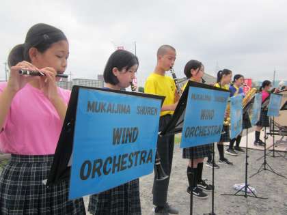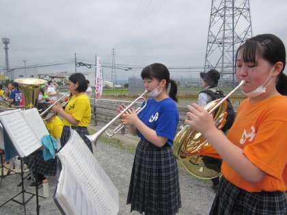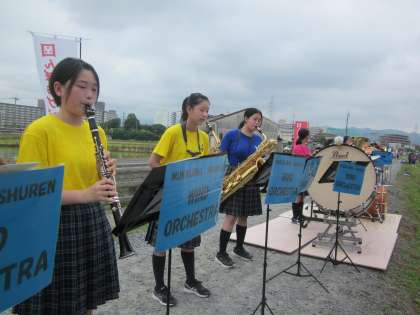 本日開催された「第3回たんぼラグビーin京都・向島」に吹奏楽部が参加させていただきました。選手入場の際に「パプリカ」,そして試合開始の合図として「ファンファーレ」,計2曲を演奏させていただきました。