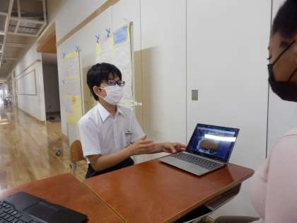 8年生英語では,昨日に引き続き,新しいALTのイタナ先生へ,京都の旅行プランを提案しました。ALTの先生の好みに合わせて,御朱印帳を集められるところや,好きなアニメのショップを紹介する人もいました。しっかりアイコンタクトをしながら紹介し,その後たずねられることにも一生懸命考えて答えようとする8年生の姿はとても素敵でした。イタナ先生からも,まちがっても大丈夫,トライし続けようと,励ましの言葉をもらいました。