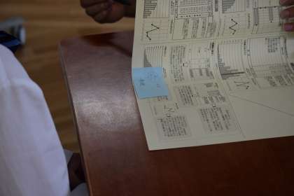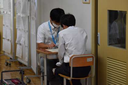 返却中は,真剣にコメントやアドバイスに耳を傾け,教室に戻ってから付箋にメモをしたり,自学自習シートに課題を書いたりする姿もありました。