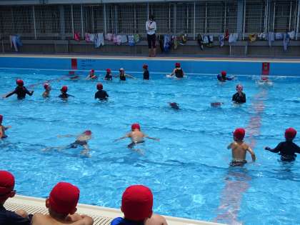 少しずつ慣れてきて顔をつけられるようになる子も増えてきました。