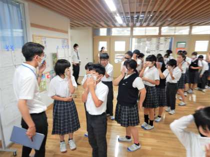 訓練後には,各クラスでお話もあったと思いますが,いざという時ほど落ち着いて,『お・は・し・も・て』を心がけての行動をしてもらいたいと思います。