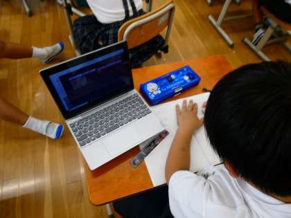 算数の学習では,「10をもとにして」学習をしました。GIGA端末を使って10のまとまりが10こ集まると100になることや,100は10のまとまりがいくつ集まってできているのかについて学習をしました。