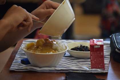 ワゴンを運ぶ先生も,どこか足取り軽く,廊下から「今日はカレーだぞ!」と言わんばかりの笑顔をクラスに送ってくれているような気がしました。