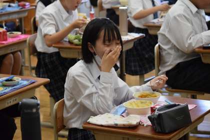 「増やしでお願いします!」と配膳のタイミングから積極性を見せる生徒もいれば,いつもなら「少し減らしてもらおうかな?」という生徒も今日は少なかったように感じます。