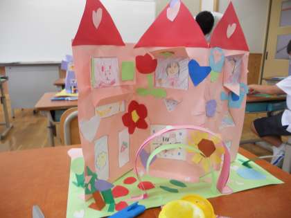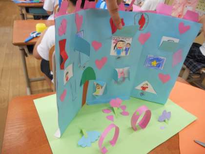 図工で完成した作品を見合いました。
