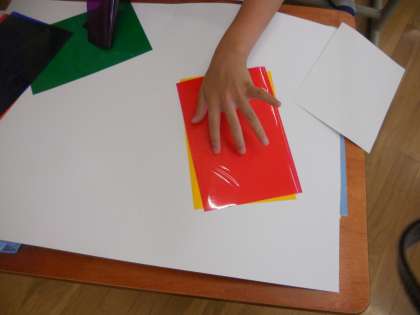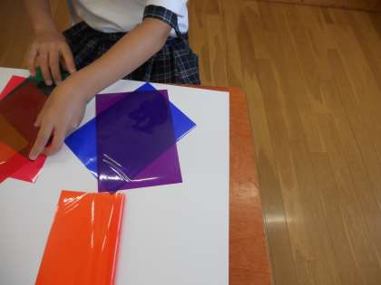 赤と青を重ねたら紫になることは知っていたけど,重ね方を変えると色が違うな。