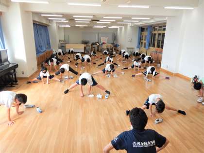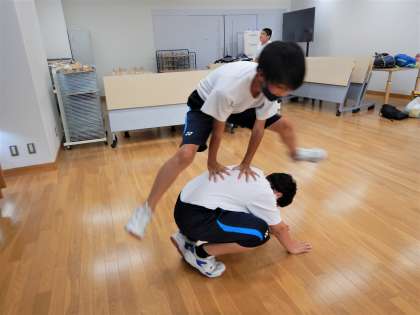 今日の放課後の『走ろう会』のトレーニングは,熱中症対策として直射日光が避けられる室内にて行いました。