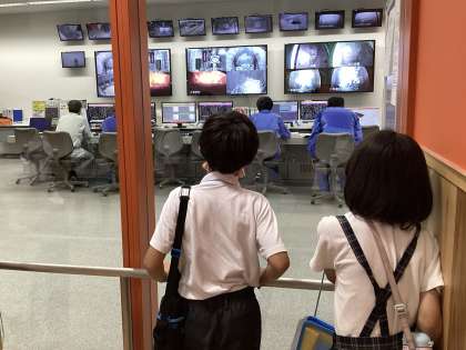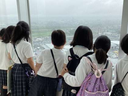 展望台にのぼって埋め立て地の場所を確認しました。
