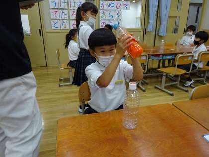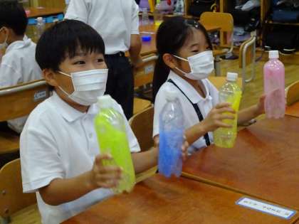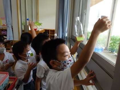 色水を光にあてて,