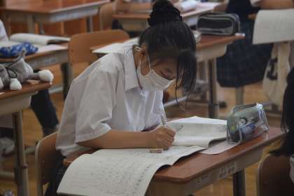 1限目終了のチャイムが鳴っても,黙々と続ける生徒もたくさんいました。
