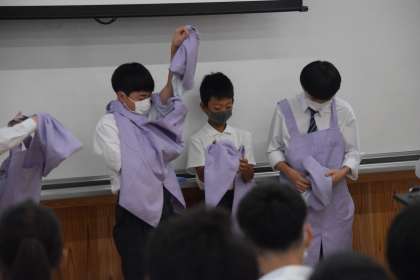 給食時間の1コマを切り取るクラスもあれば,英語のH先生のモノマネを披露しながら発表するクラスもありました。