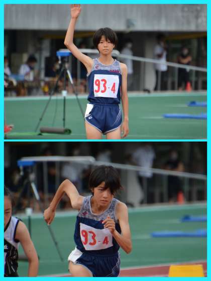 この2日とも応援に来ていた本校陸上部9年のOさん。出場選手の大きなサポートとなっていたと思います。1日目は同じく陸上部9年のTさんも来てくれていました。支えて支えられて…。これも部活動の1シーン。ジーンときました。二人とも暑い中大変でしたね。お疲れ様でした。