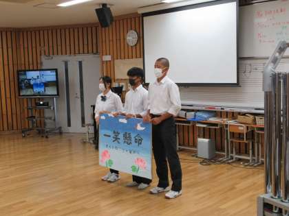 その後、陸上800m京都府大会で優勝した生徒への表彰、学校長からの2学期の過ごし方などについてのお話、生徒会からのお話があり、2学期がスタートしました。