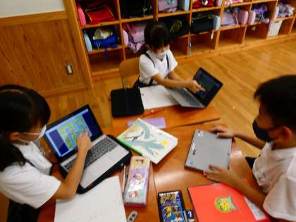 友だちの道案内をメモを取りながら聞き、聞き取りながら書いたメモを見ながら道案内された場所はどこかGIGA端末にマークを付けました。