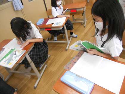 2人組になって,教科書の地図を使いながら言い合いました。