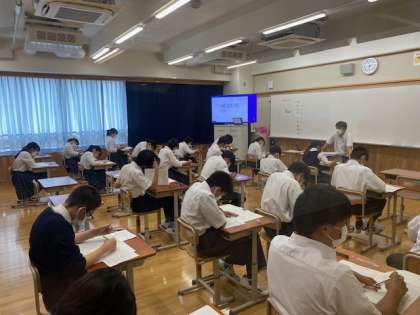 夏休みあけ初日。早速テストに取り組みました。夏休みにがんばったことを確かめるテストです。来週からテストが返却されます。結果を見つめ,2学期からの自分の学習にいかしてください。