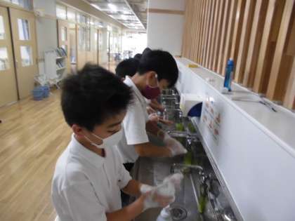 最後にみんなで正しい手の洗い方を確認して手の汚れをしっかり落としました。