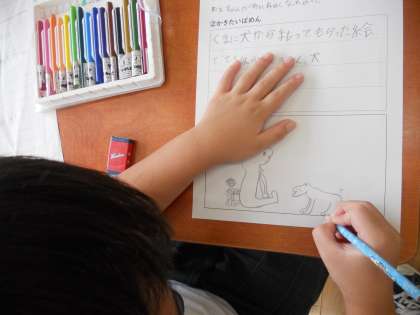 お話の読み聞かせを先週し,「こんな場面を描きたい!」と