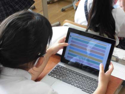 思っていた結果と違っていたようで、棒グラフに表すことに面白さを感じているようでした。