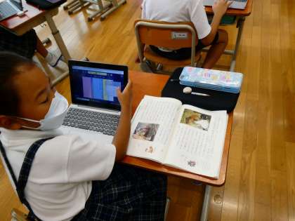 国語科の学習では、説明文を読んで考えたことを伝えています。