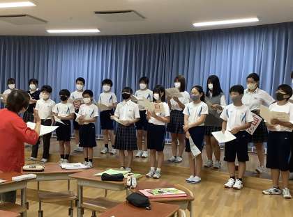 合唱コンクールにむけて交流学級の友だちと一緒にがんばっています。