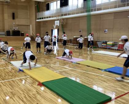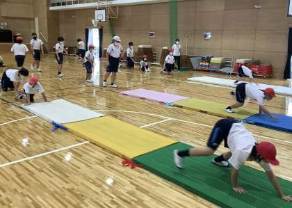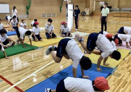 今日はマット運動のための準備や準備運動など安全に学習を進められるようにみんなで確認をしました。