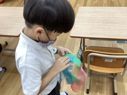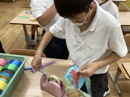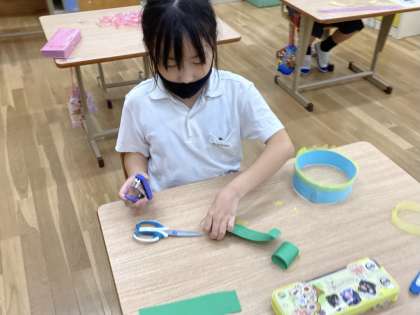 1組 図工「わっかでへんしん」