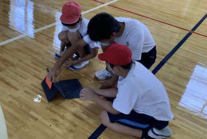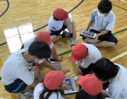 ロイロノートに昨日配信された学習動画を確認してから「前転」の練習をしました。