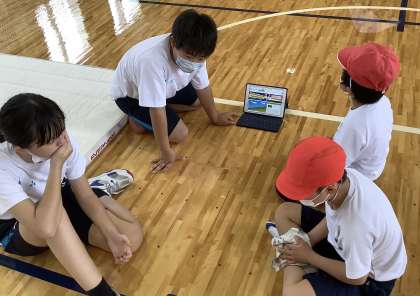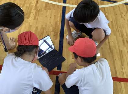 事前に動画を視聴してきた上級生が「前転」の「できるポイント」と「できないポイント」を教えてくれました。