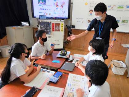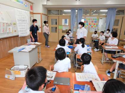 外国語の『My Summer Vacation』では、夏休みに行った場所や食べた物、楽しんだこと、感想などを伝え合えるようになることを目標にして学習しています。