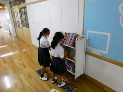 中間休みの時間に整理整頓係の児童が、「本の整理をしてもいいですか。」と言って係の仕事をしてくれていました。