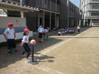 3年 体育科「ハンドベースボール」