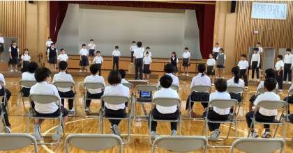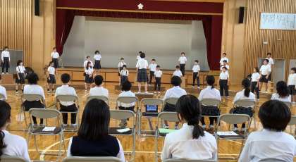 今日は体育館で練習しました。みんな少し緊張していましたが、「いつもよりきれいな声で歌えました」と学習の成果を発表していました。本番まであと少しです!