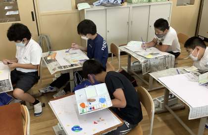 パレットで色をまぜて、丁寧にいろをぬっていました。もう少しで完成です!