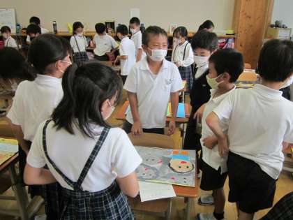 そのなかで、クラス全体で絵を見あう活動を行いました。