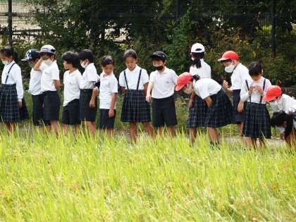 稲穂が垂れ下がるほど大きく成長していることに子どもたちは驚いていました。